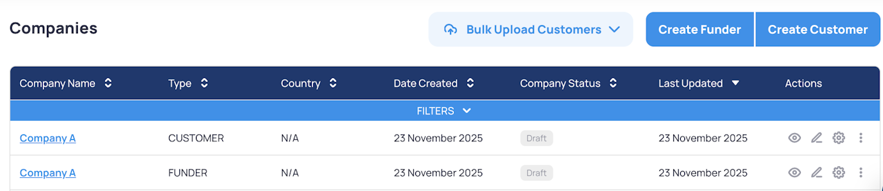 When setting up the Dynamic Discounting Deal the platform admin will need to assign “Corporate A” Funder as the Funder for the deal
