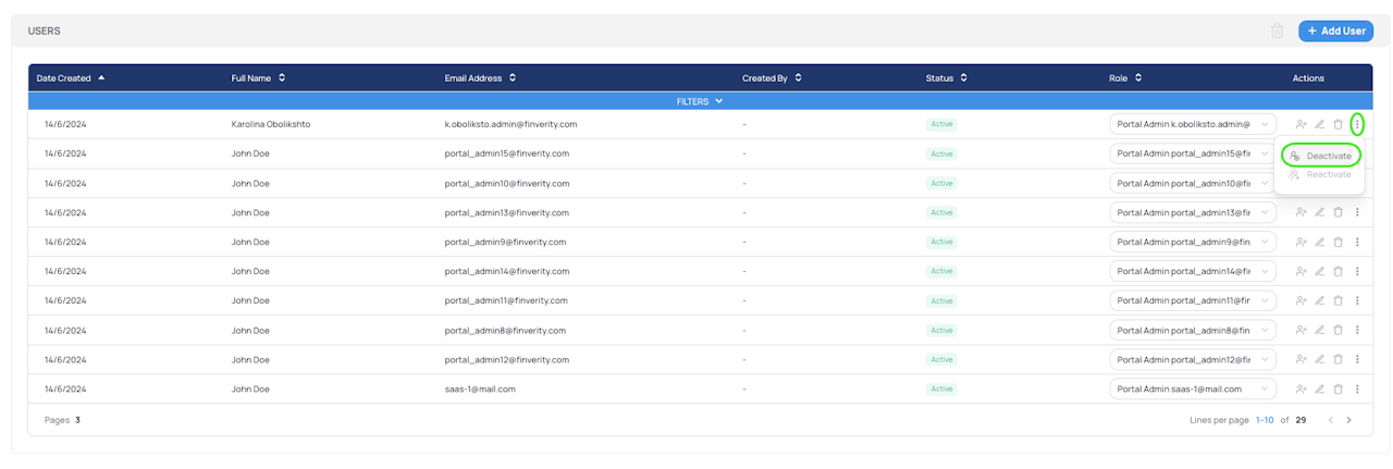 Once there, locate the user you wish to deactivate.