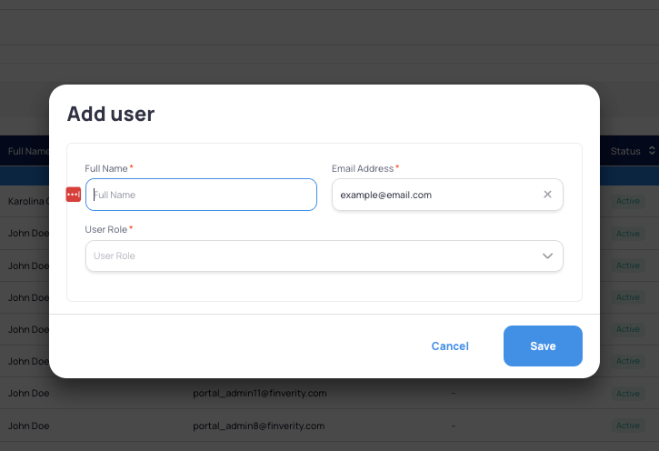 Note: The invitation to join FinverityOS will be sent to this address, so please double-check for accuracy.
